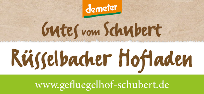 Im Rüsselbacher Hofladen findet sich neben den eigenen Produkten aus der Hühner- und Brudergockelaufzucht ein gesamtes Bioladen-Sortiment. Regionale Produkte ergänzen das Angebot auf ganz zauberhafte Weise…